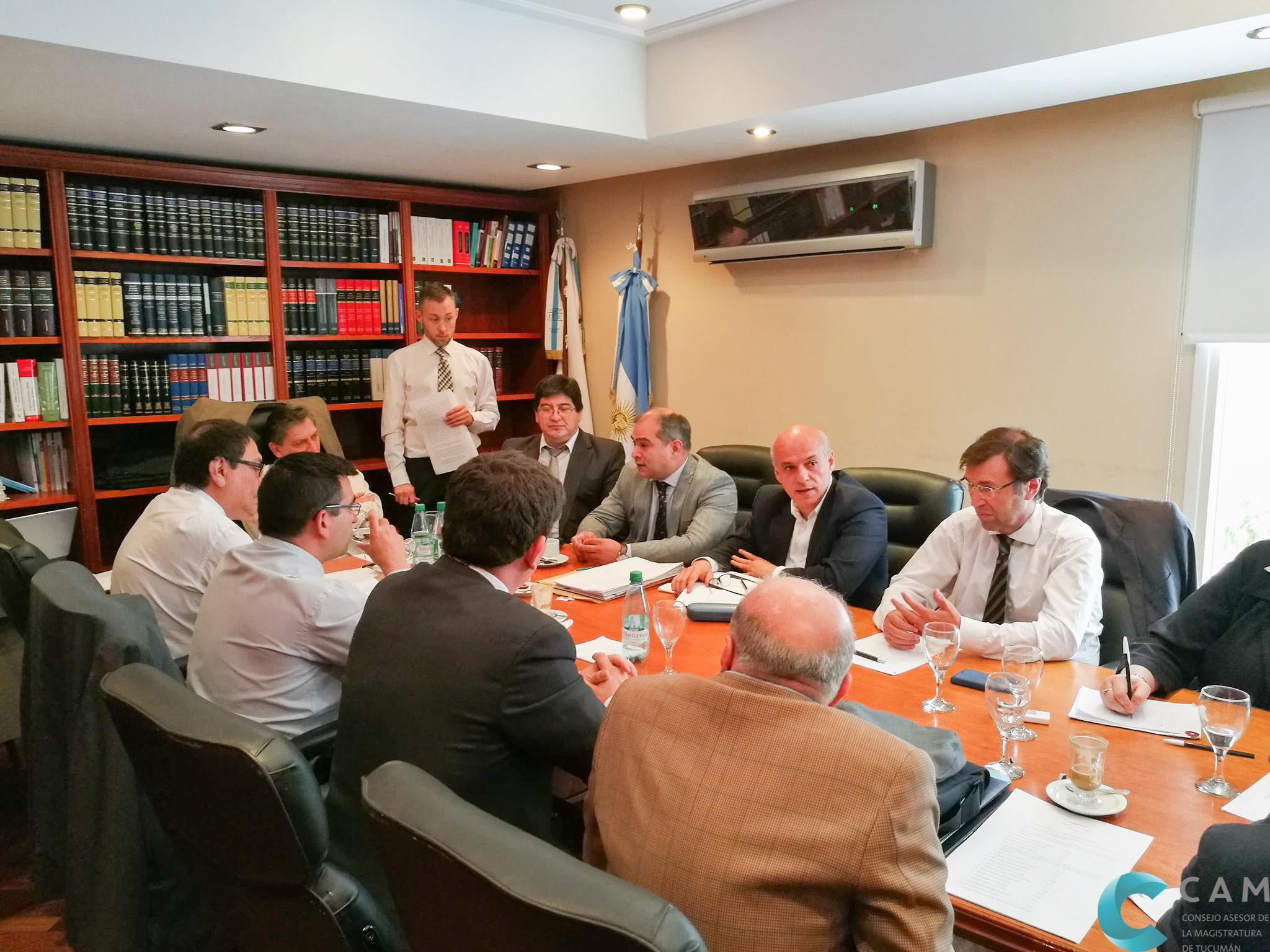El Consejo Asesor de la Magistratura de Tucumán sesionó en la tarde del 29 de noviembre del corriente, en una jornada que se extendió por más de 5 horas. Presidió la Sesión el Dr. Daniel O. Posse, con la presencia de los Consejeros Fernando Valdez, Jorge Carrasco, Jorge Martínez, Carlos Caramuti, José Dantur, Rolando Granero, Raúl Fermoselle, Javier Pucharras, Martín Tello y Roque Cativa, y de los Secretarios del CAM Sofía Nacul y Fabricio Falcucci. Previamente, Consejeros, asesores, funcionarios y personal del CAM mantuvieron una reunión de trabajo para calificar antecedentes de postulantes de los Concursos Nº 111 Fiscal/a de Instrucción en lo Penal del Centro Judicial Concepción (14 postulantes) y Nº 112 Fiscal/a de Instrucción en lo Penal del Centro Judicial Monteros (21 postulantes).
