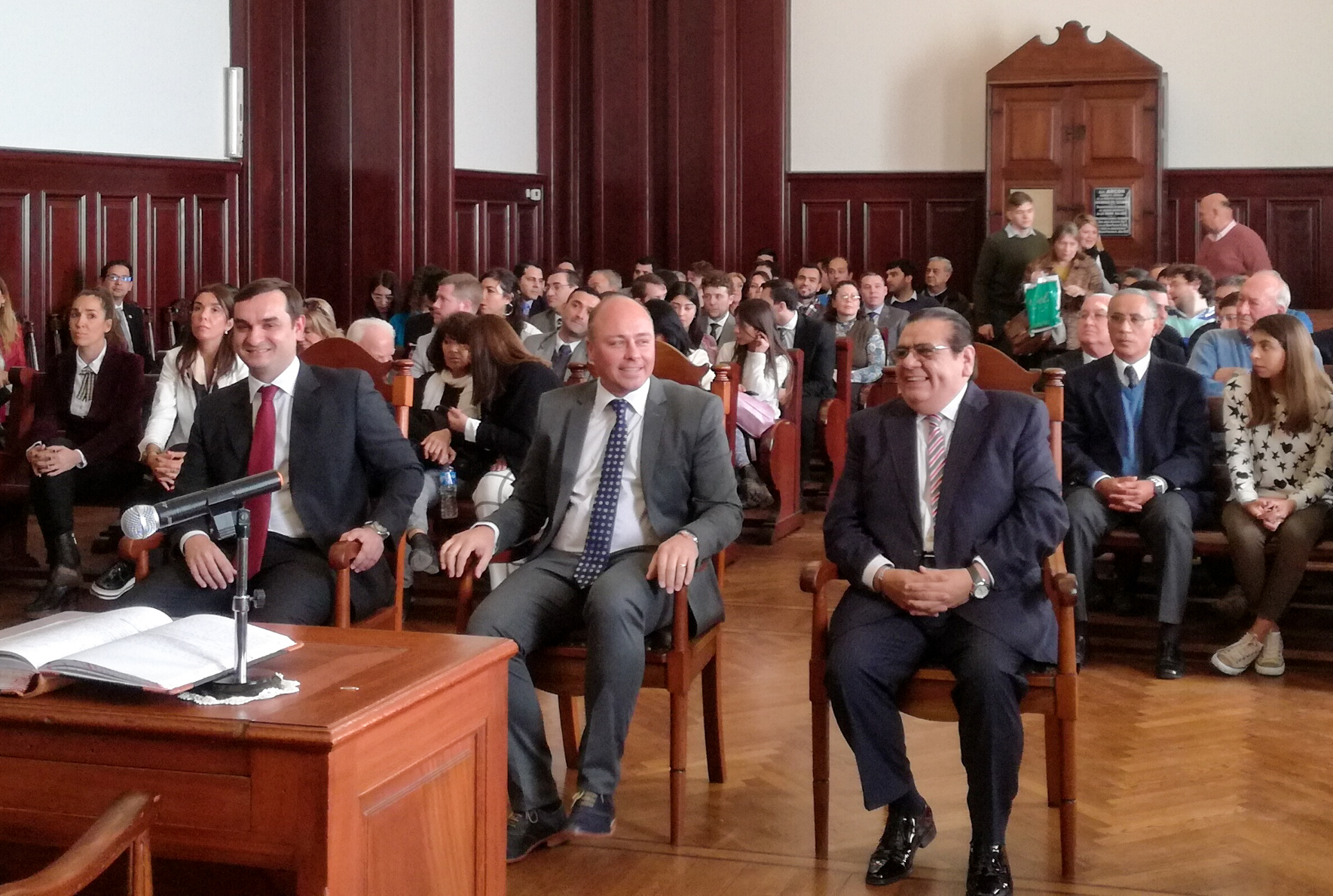 El acto, que se realizó en el Salón de Actos Públicos “Dr. Juan B. Alberdi” del palacio de tribunales, fue encabezado por el Presidente de la Corte Suprema de Justicia de Tucumán, Daniel Oscar Posse, con la presencia del Presidente del Consejo Asesor de la Magistratura y Vocal de la CSJT, Antonio Daniel Estofán, de los Vocales del superior tribunal René Mario Goane, Antonio Gandur y Claudia Beatriz Sbdar y del Ministro Fiscal, Pupilar y de la Defensa, Edmundo Jesús Jiménez. Por medio del juramento de ley, tomaron posesión de su cargo Mario Rodolfo Leal, como Vocal de la Excma. Cámara de Apelación en lo Civil y Comercial Común del Centro Judicial Concepción, Federico Rafel Moeykens, como Juez de Menores de la II° Nominación en el Centro Judicial Capital y Pedro León Gallo, como Fiscal de Instrucción de la XII° Nominación del Centro Judicial Capital.