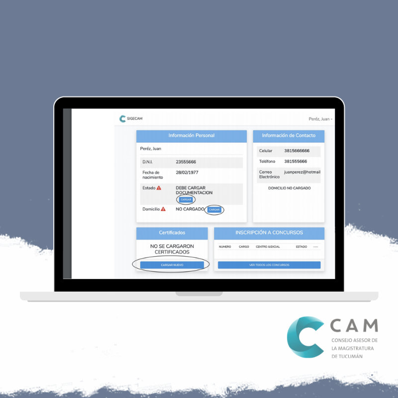 Jul282020 En este tutorial, te contamos cómo usar el nuevo sistema SiGeCAM Cualquier consulta sobre la utilización del mismo escriba a sistemas@camtucuman.gob.ar Comparte este artículo Share on FacebookShare on Facebook TweetShare on Twitter Share on LinkedInShare on LinkedIn Navegación entre publicacionesAnteriorPublicación anterior:Concurso N° 232SiguientePublicación siguiente:Sesión de Consejo para el 29 de julioNoticias relacionadasReporte de concursos del período 2023 – 20255 de noviembre de 2025Nueva sesión de Consejo: 29 de octubre28 de octubre de 202513 de octubre: nueva sesión con entrevistas en el CAM9 de octubre de 2025Llamado a Concurso n°34730 de septiembre de 2025