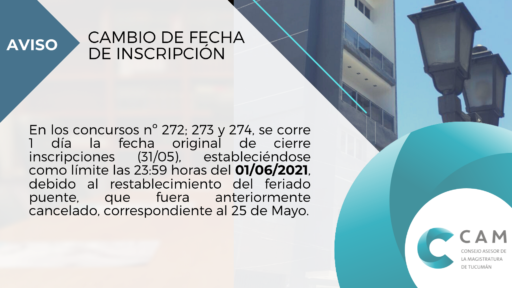 Cambio de fecha de cierre de inscripción en concursos nº 272; 273 y 274