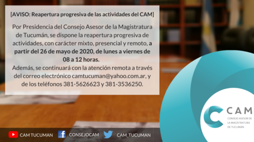 El Consejo Asesor de la Magistratura de Tucumán tendrá su sesión por videoconferencia nuevamente este miércoles 10 de junio de 2020 a 10:00 horas, donde se tomarán las entrevistas del Concurso n° 167 (Juzgado del Trabajo del Centro Judicial Capital). La primera parte de la sesión, con el orden del día general, se transmitirá en…