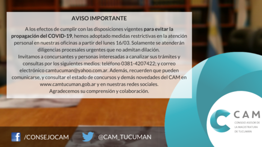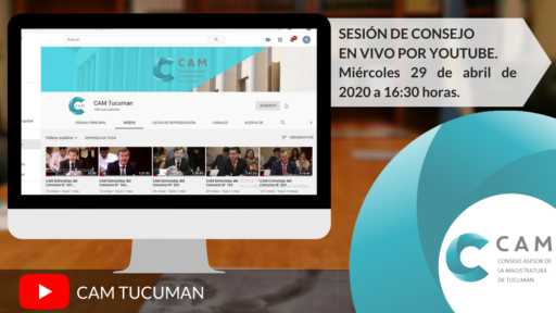 Este 13/5 a 16:00 horas, el CAM sesionará por videoconferencia con transmisión en vivo en su canal de YouTube. Para ver la sesión por YouTube ir a https://youtu.be/SsPLKJHF1E8 y para presenciar las entrevistas del Concurso 200 (Vocal de Cámara Penal Sala VI del Centro Judicial Capital) por videoconferencia, registrarse en https://bit.ly/2zpWURk