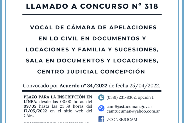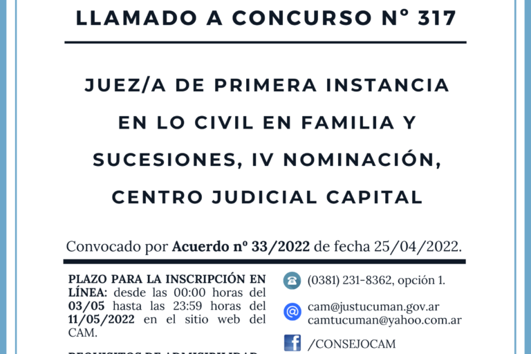 El lunes 27/06/2022 a 10 horas, el Consejo Asesor de la Magistratura de Tucumán mantendrá una nueva sesión en donde se tomarán las entrevistas correspondientes al Concurso n° 228 para cubrir un cargo de Fiscal/a de Instrucción Penal de la IV Nominación del Centro Judicial Concepción. La primera parte de la sesión, con el orden…