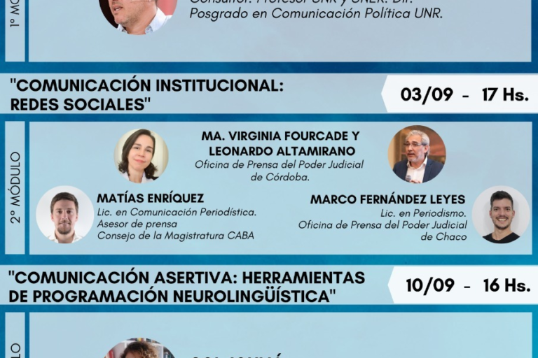 El Foro Federal de Consejos de la Magistratura y Jurados de Enjuiciamiento de la República Argentina (FOFECMA) invita al Ciclo Virtual de Capacitación en Comunicación, a realizarse a partir del 27 de agosto de 2020. El ciclo cuenta con 3 módulos, que se pueden cursar independientemente, y es de acceso libre y gratuito, previa inscripción.…