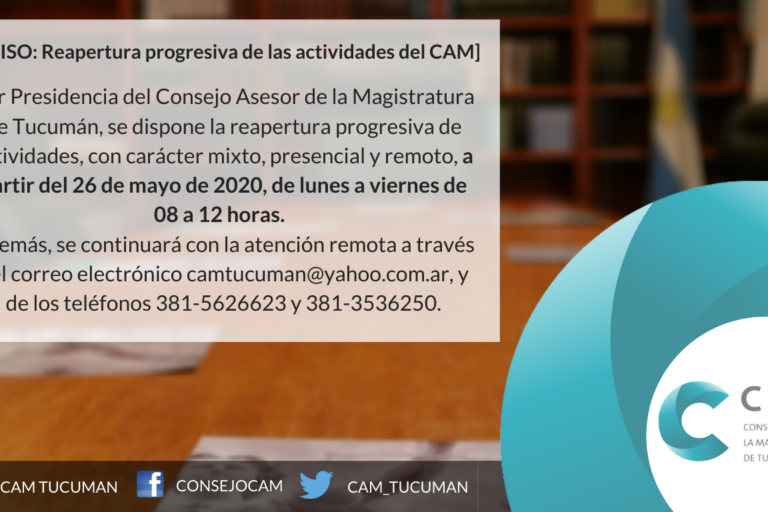 El Consejo Asesor de la Magistratura de Tucumán tendrá su sesión por videoconferencia nuevamente este miércoles 03 de junio de 2020 a 15 horas, donde se tomarán las entrevistas del Concurso n° 175 (Vocalía de Cámara de Apelaciones en lo Penal de Instrucción). La primera parte de la sesión, con el orden del día general,…
